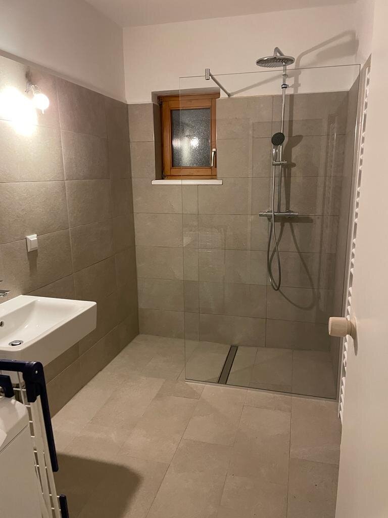 *) neues Bad mit großer Dusche und neuer Waschmaschine