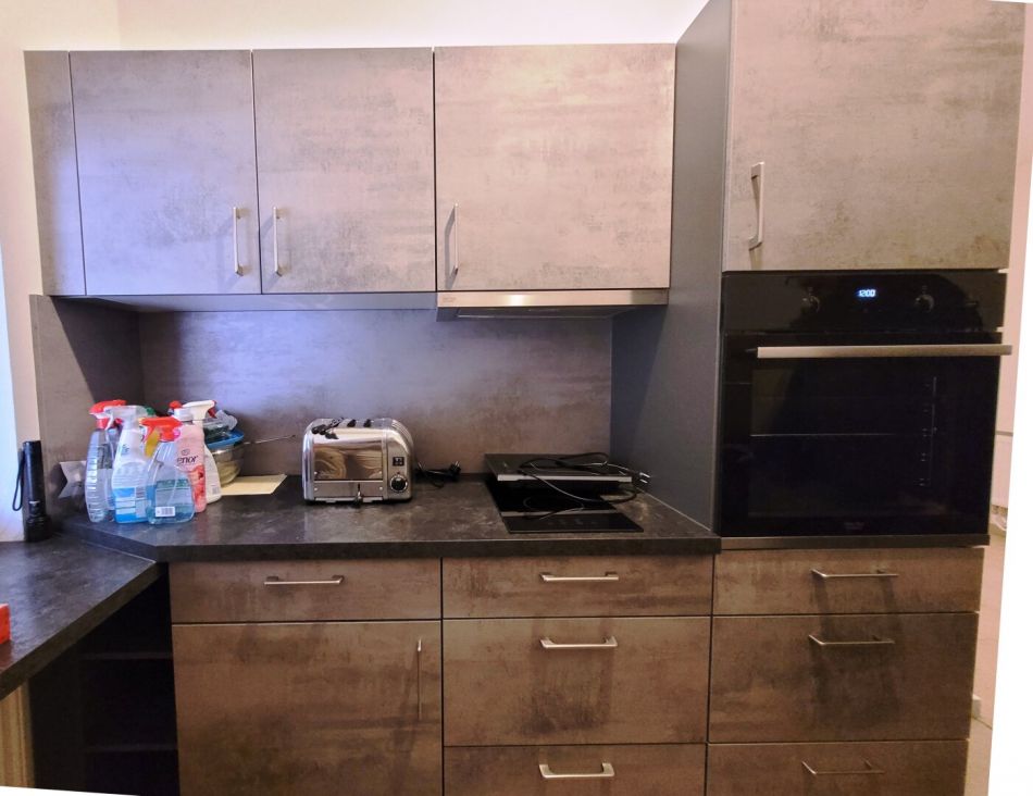 *) neue Küche mit neuen Elektrogeräten (Kühl- und Gefrierschrank, Geschirrspüler, Ceranfeld, Backofen)