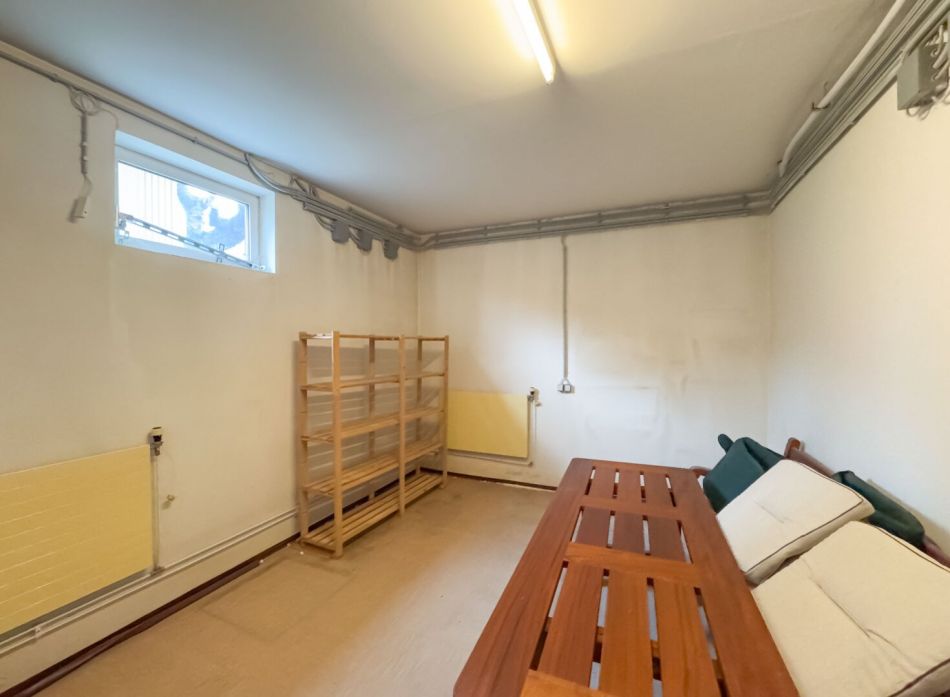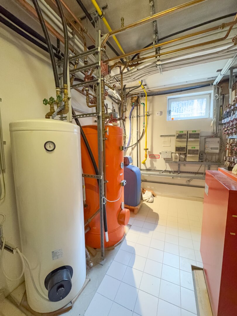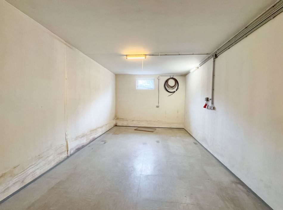 Keller (ca. 160 m², 3 m Höhe): mehrere Kellerräume, Bad/WC, Heizraum, Werkstatt mit massiven Werkbänken, direkte Garagenanbindung. Ideal auch für berufliche Zwecke, Atelier, Studio oder Hobbys.