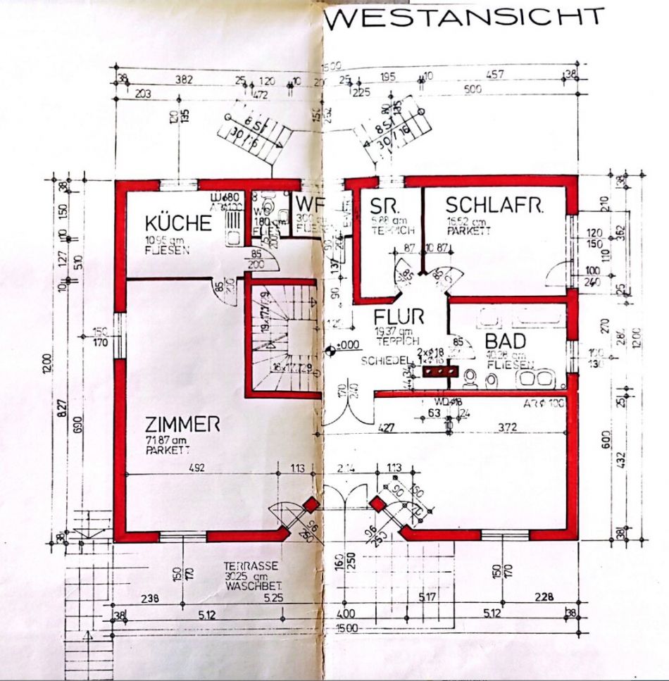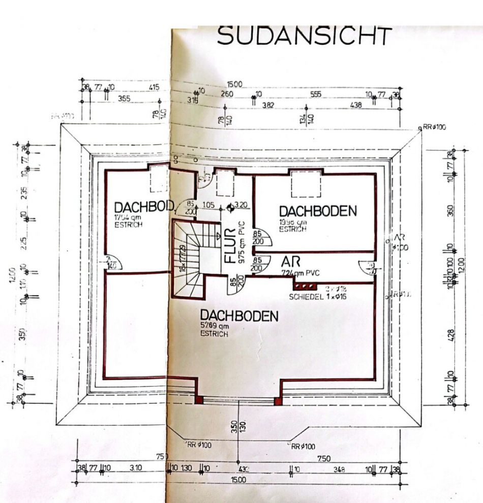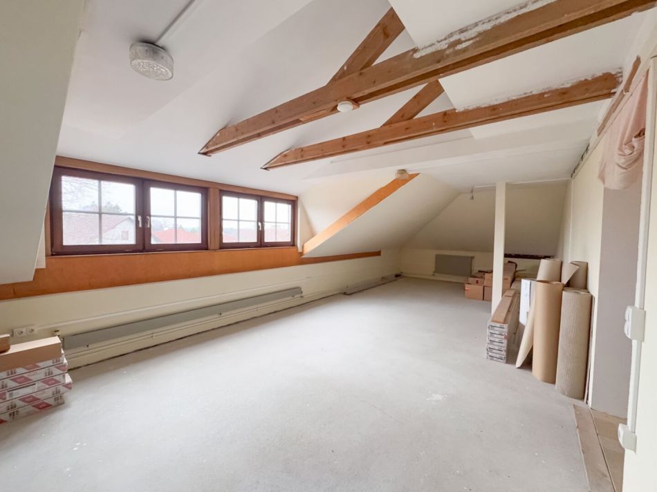 - Dachgeschoss ( ca. 110 m2) : bestehend aus drei Räumen, welche teilweise ausgebaut sind, jedoch nicht zur Wohnfläche adaptiert sind, sondern derzeit als Dachboden und Staufläche dienen.