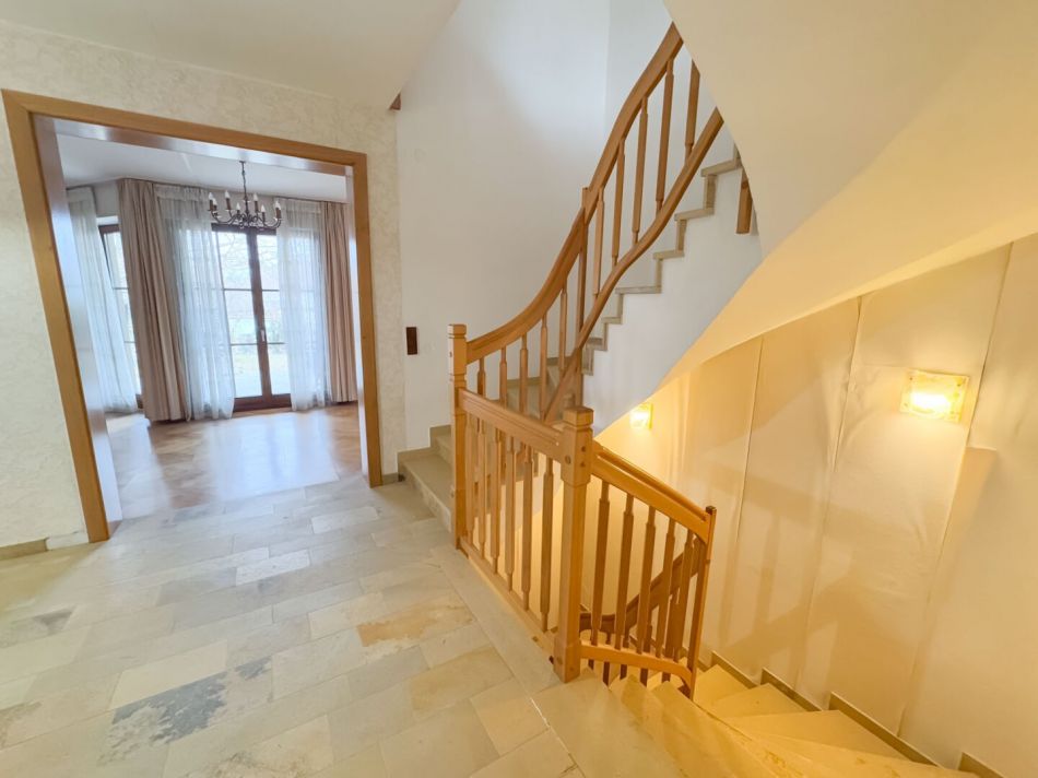 Erdgeschoss (ca. 110 m²): Vorraum, großer geräumiger Flur mit Stiegenhaus, ca. 71 m2 Wohnsalon mit Terrassenzugang, Schlafzimmer mit Schrankraum, Küche, Badezimmer und separates WC.