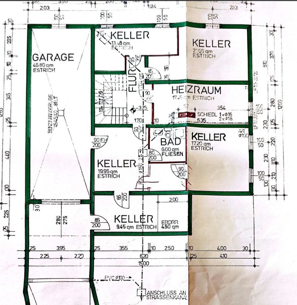 Ca. 160 m² Nutzfläche im Keller mit ca. 3 m Raumhöhe