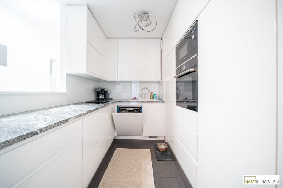 - moderne, maßgeschneiderte Einbauküche vom Tischler ausgestattet mit hochwertigen Geräten inkl. Granit Arbeitsplatte