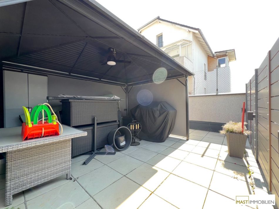 - Schöne, große Terrasse mit Eigengarten, Terrassenbeschattung, Gartenhütte und überdachten Sitzgelegenheiten