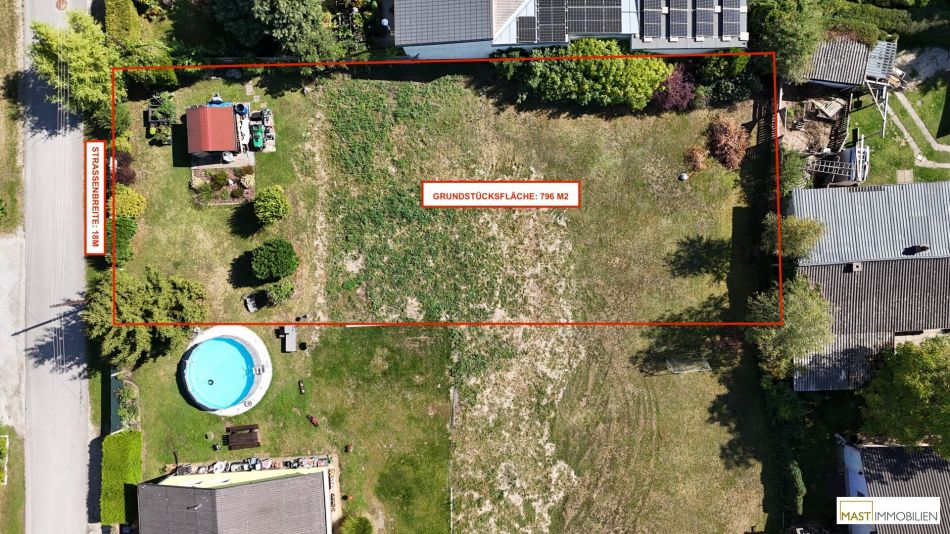Zum Verkauf gelangt ein sehr attraktives Grundstück in ausgezeichneter Lage von Strasshof an der Nordbahn – nur wenige Gehminuten vom Bahnhof entfernt und ideal für die Errichtung eines Einfamilienhauses geeignet.Das Grundstück umfasst eine Fläche von ca. 796 m². Es handelt sich hierbei um eine Neuteilung zweier bestehender Parzellen (Grundstück 3).