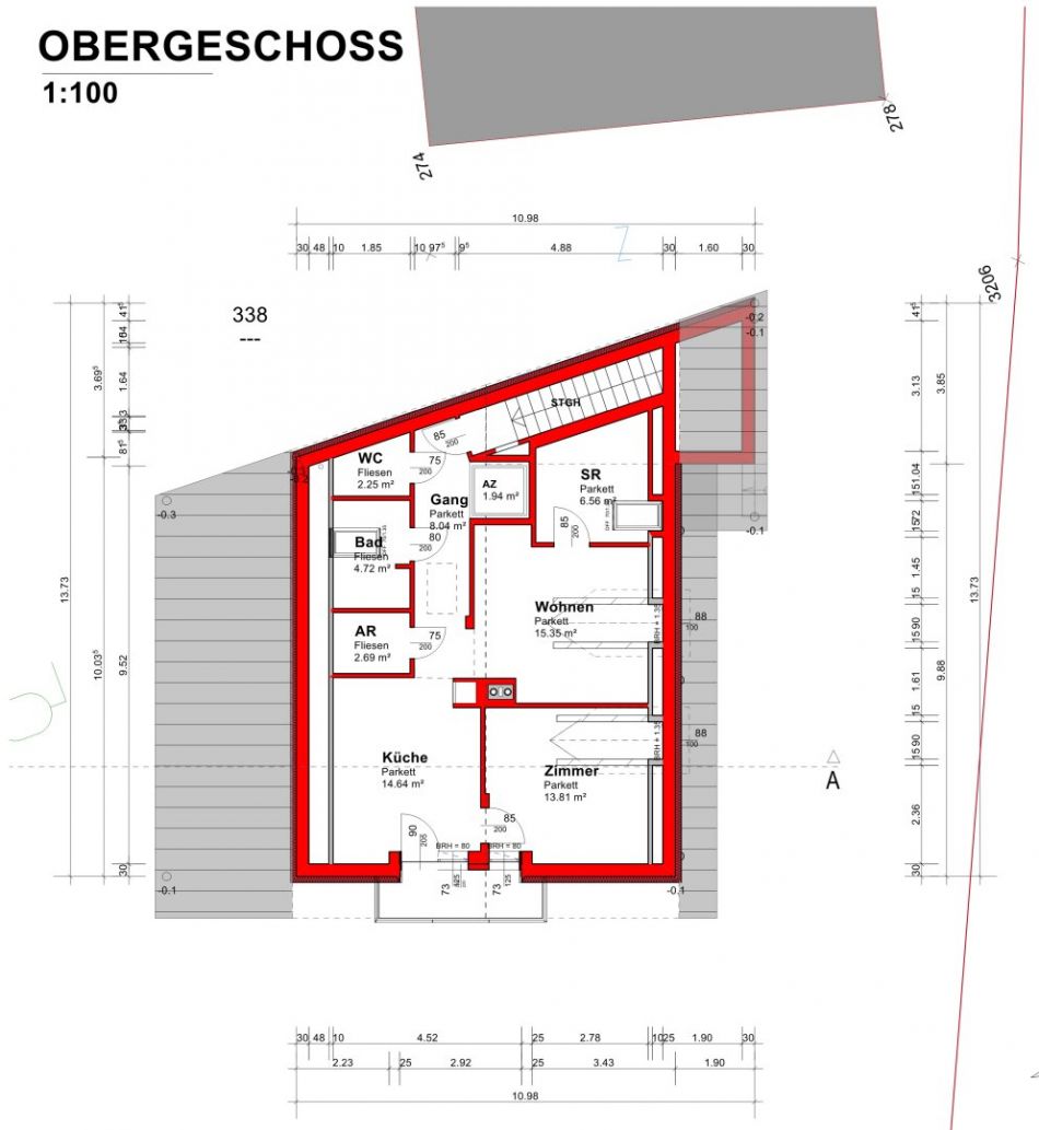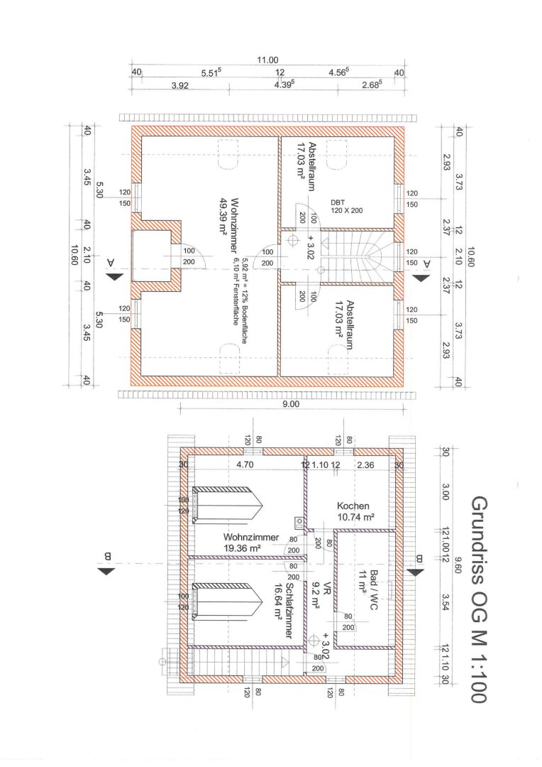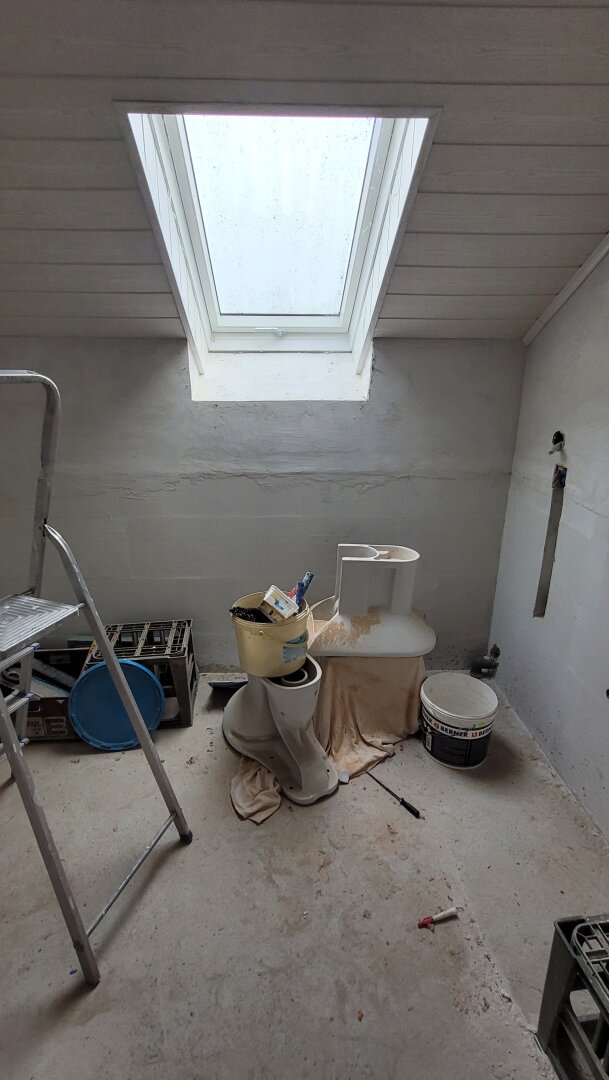 Das OG ist noch im Rohbauzustand: Schlafzimmer, Wohnzimmer, Küche, Bad, WC