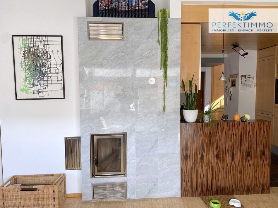 Die Wohnung verfügt über einen überdurchschnittlichen Ausstattungsstandard. Im Wohnzimmer sorgt ein stilvoll mit Carrara-Marmor verkleideter Kachelofen für wohlige Wärme und eine besondere Wohnatmosphäre, während die Öl-Zentralheizung mit Wandheizkörpern und ein Warmwasserboiler im Abstellraum für zusätzliche Versorgungssicherheit stehen. Kunststofffenster mit Doppelverglasung, Plissees an allen Fenstern sowie Raffrollos im Schlafzimmer unterstreichen den hochwertigen Charakter. Hochwertige Holztüren mit grauem Metall-Türstock und eine praktische Sonnenmarkise auf der Terrasse runden das Bild ab.
