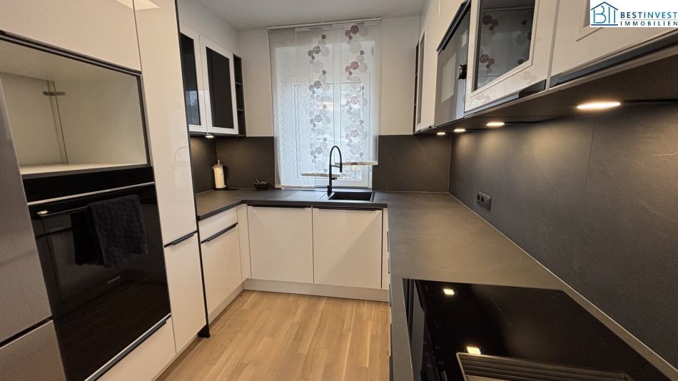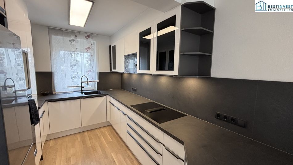 Der offene Wohnbereich mit einer modernen Wohnküche inkl. aller technischen Raffinessen, schafft eine einladende Atmosphäre, die zum Verweilen und geselligen Beisammensein einlädt. Die großen Fenster sorgen für viel Tageslicht und ermöglichen Ihnen einen atemberaubenden Fern- und Grünblick.
