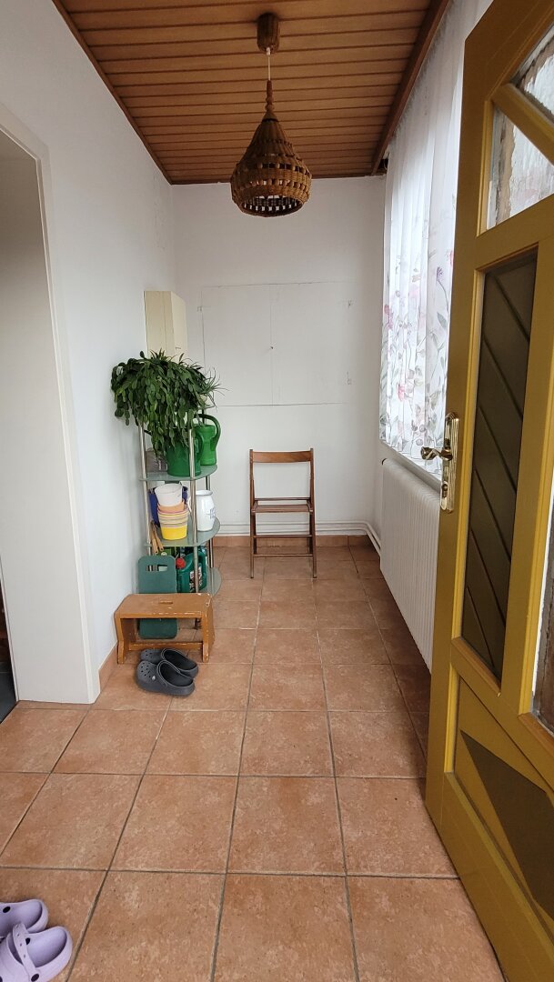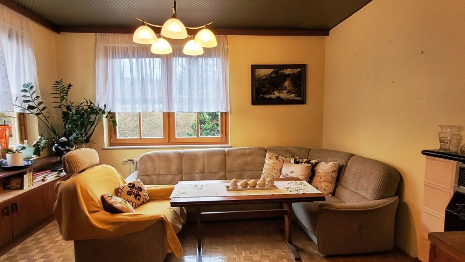 Das Haus wurde vorher mittels Gasheizung beheizt, der Gasanschluss ist immer noch an der Hausmauer vorhanden, im Wohn- und Schlafzimmer steht auch noch ein Holzofen zur Beheizung in der Übergangszeit bereit.