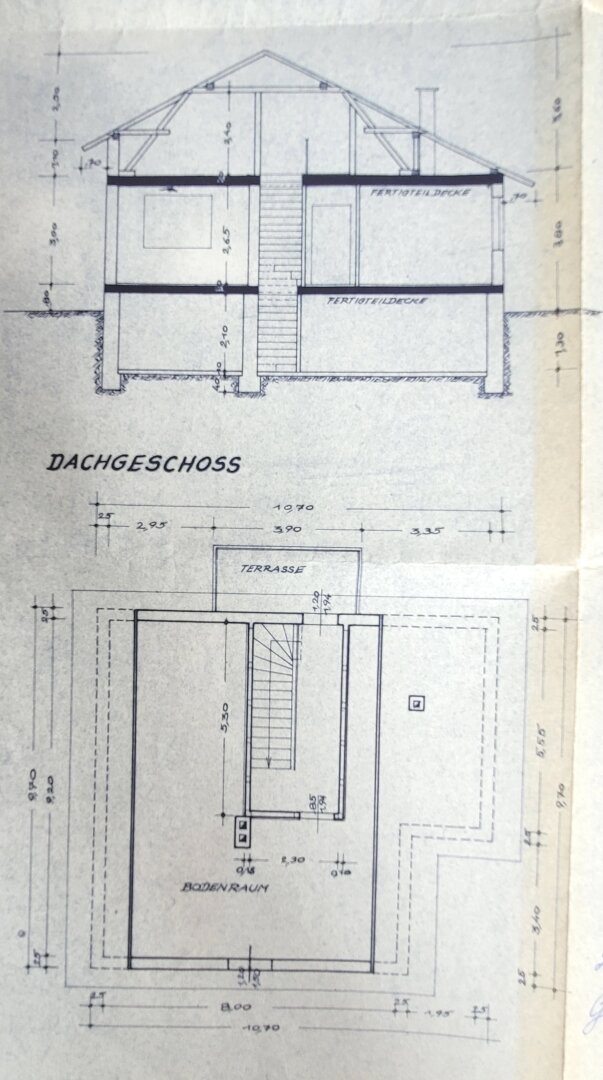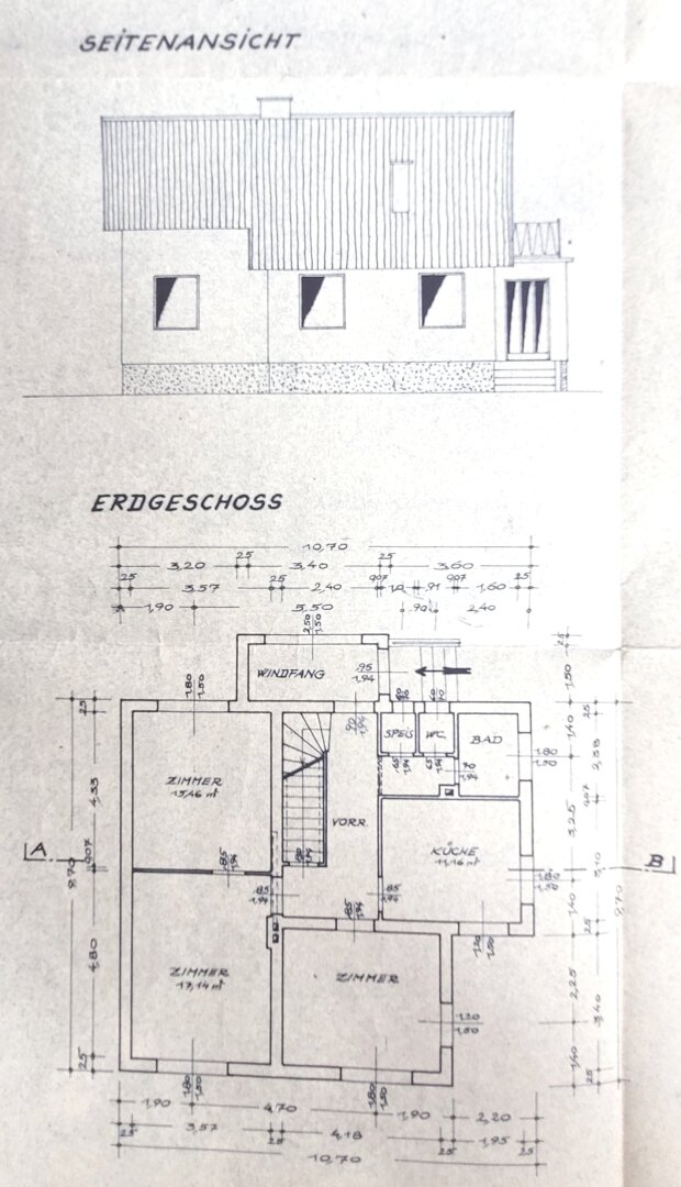 Das Mauerwerk im EG wurde in Hohlblocksteinen 25 cm Stärke, die Zwischenwände aus Ziegeln bzw. Düwasteinen errichtet. Im EG besteht der Fußboden aus Holz, bzw. wurde in den späteren Jahren Parkettböden sowie Laminatböden verlegt.
