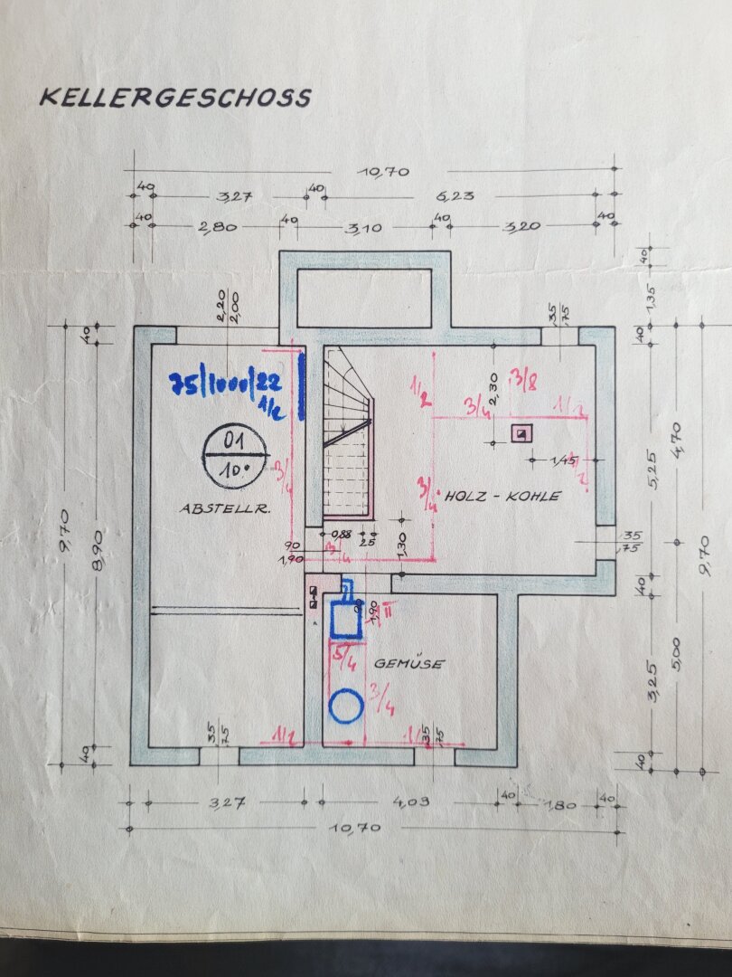 b) Keller: Dem Alter entsprechend an einigen Stellen Putzschäden ersichtlich