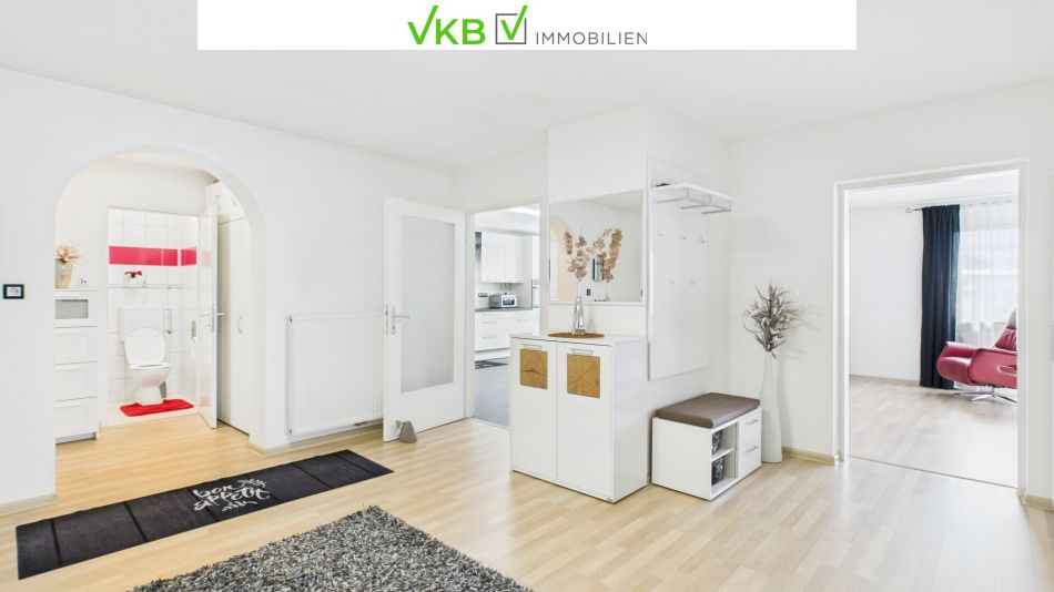 Ganz nach dem Motto "Großzügigkeit trifft auf - stilvolles Wohnen" lässt sich diese äußerst gepflegte 4-Zimmer-Wohnung mit toller Raumaufteilung kurz und aussagekräftig definieren. Der sehr gut durchdachte Grundriss besticht durch eine flexible Raumaufteilung und punktet mit einem äußerst geräumigen Vorzimmer, in der sich ein hochwertiger Garderobenvorzimmerschrank befindet, der zugleich auch als zentraler Ausgangspunkt zu den weiteren Räumen führt.