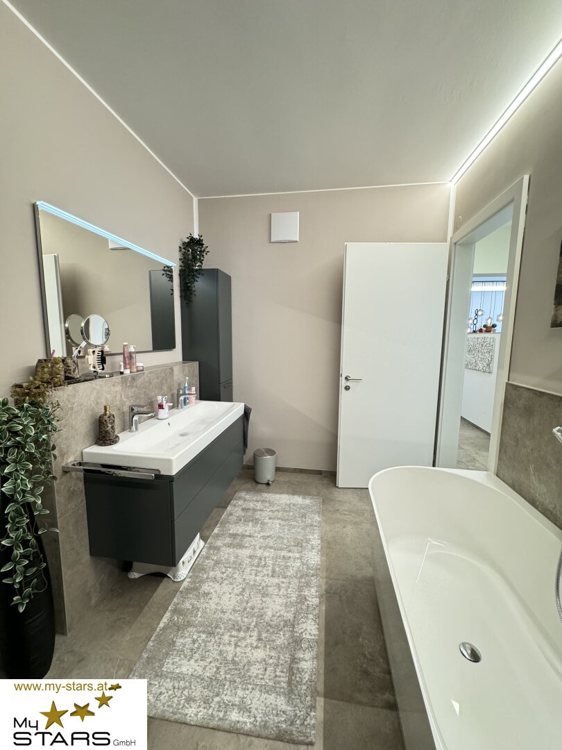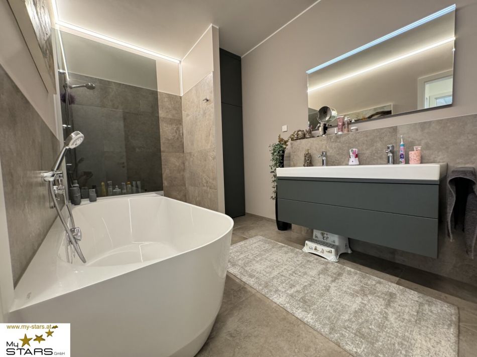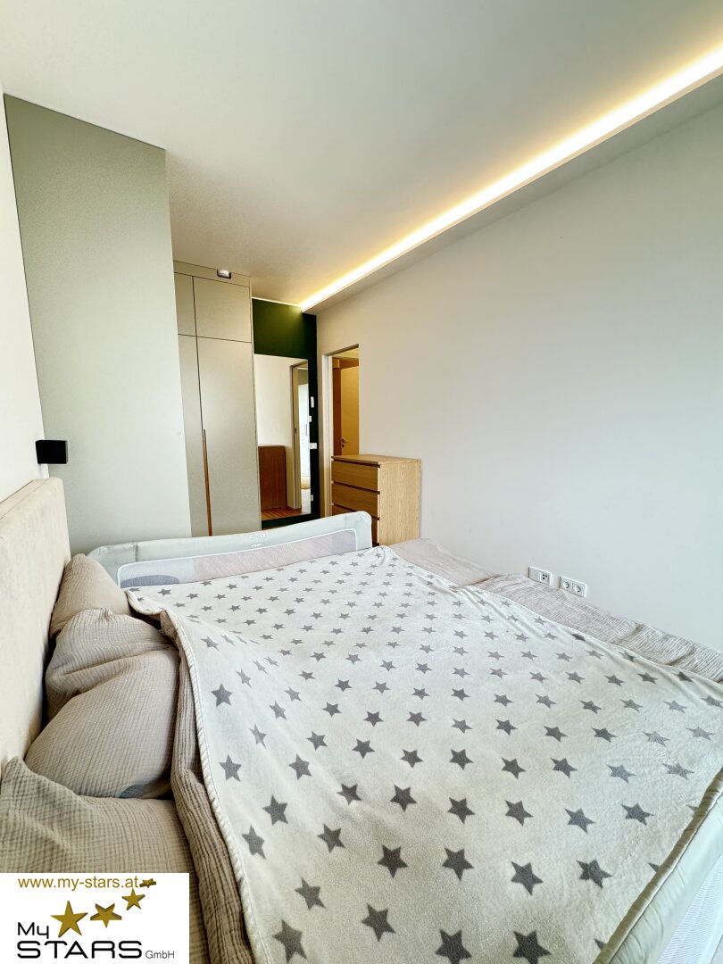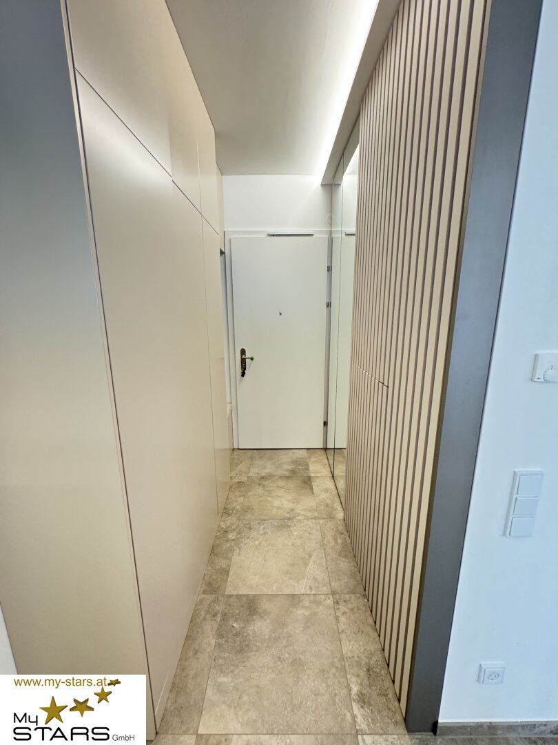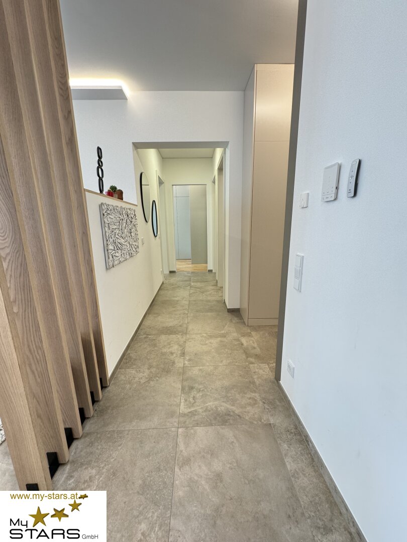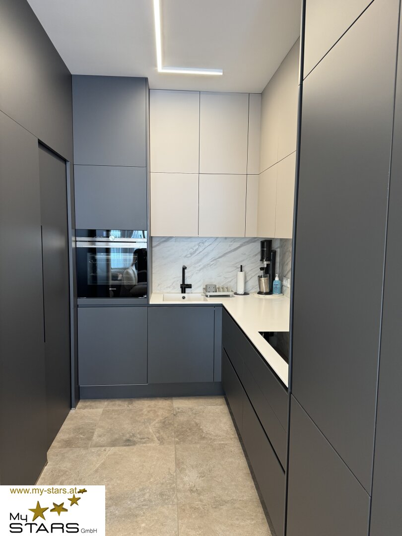 Beim Betreten der Wohnung werden Sie sofort von der modernen und neuwertigen Ausstattung begeistert sein, welche vor allem durch die maßgeschneiderten Möbel überzeugt. Der großzügige Wohn- und Essbereich ist mit hochwertigen, italienischen Naturfliesen ausgestattet und bietet genügend Platz für gemütliche Stunden mit Freunden und Familie, welche man ebenso auf der großen Loggia genießen kann. Durch die bodentiefen Fenster wird der Wohnbereich mit genügend Lichtstrahlen versorgt.