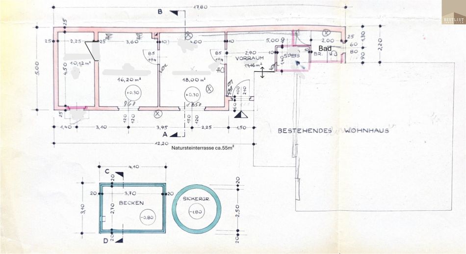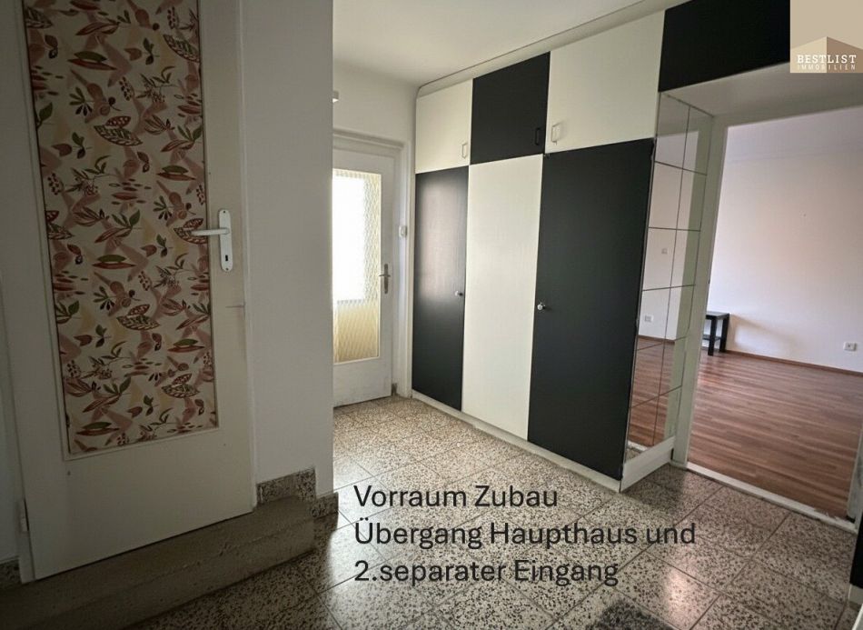 Zubau: ca. 58,88 m² (Vorraum, drei Zimmer mit 10 m², 16 m² und 18 m², ein Abstellraum, ein Badezimmer mit WC. Der eingeschossige Zubau verfügt über ein Flachdach mit Photovoltaikpotenzial sowie über einen eigenen Stromzähler.)