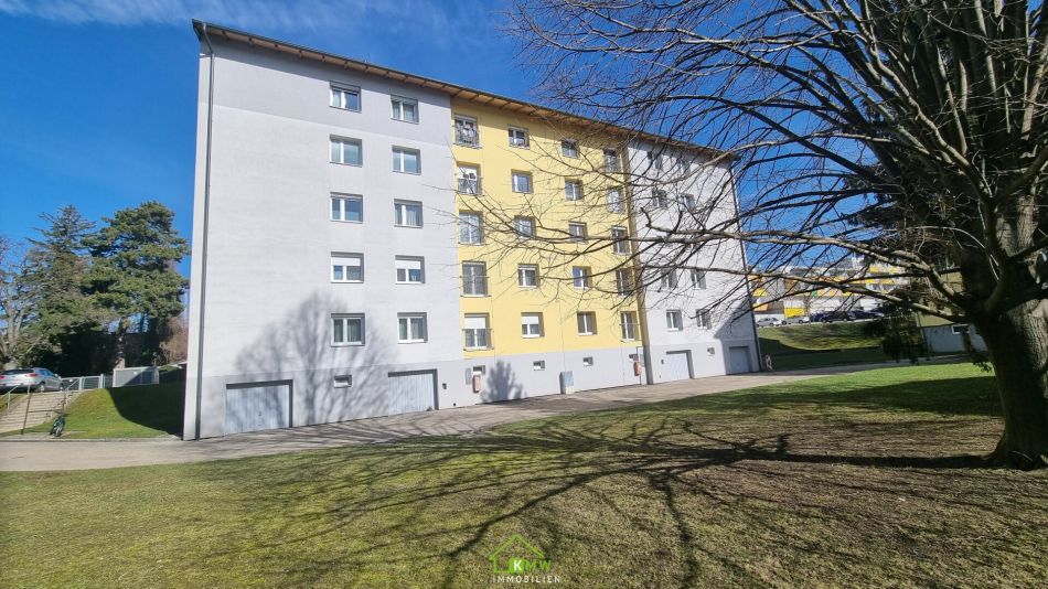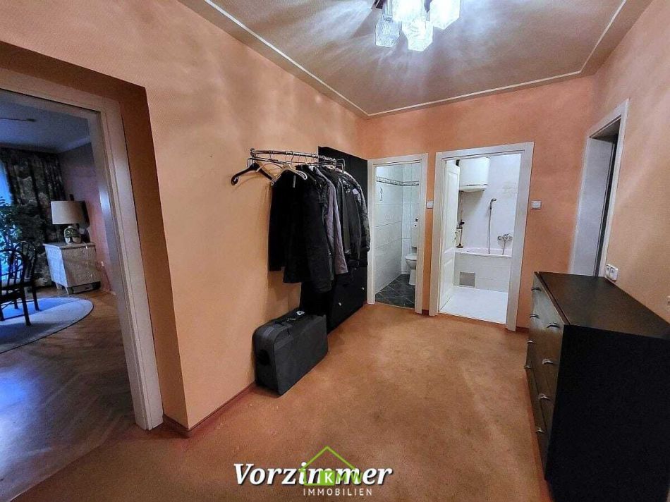 Die Wohnfläche von rund 71,5m² verteilt sich auf Vorraum, 3 zentral begehbare Zimmer, Bad mit Wanne und Waschmaschinenanschluß, separates WC und Küche.