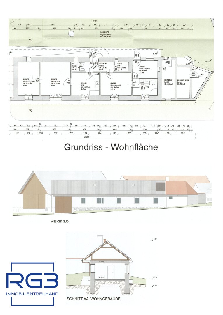 Auf rund 3.566 m² Grundstücksfläche befindet sich ein Ensemble aus Wohnhaus und großzügigen Nebengebäuden. Das Wohnhaus selbst umfasst ca. 78 m² Wohnfläche und bietet aktuell 4 Zimmer, Küche, Bad sowie Nebenräume. Ergänzt wird das Ganze durch rund 400 m² Nutzfläche, die sich auf Stadl, Lagerräume und weitere Gebäudeteile verteilt.