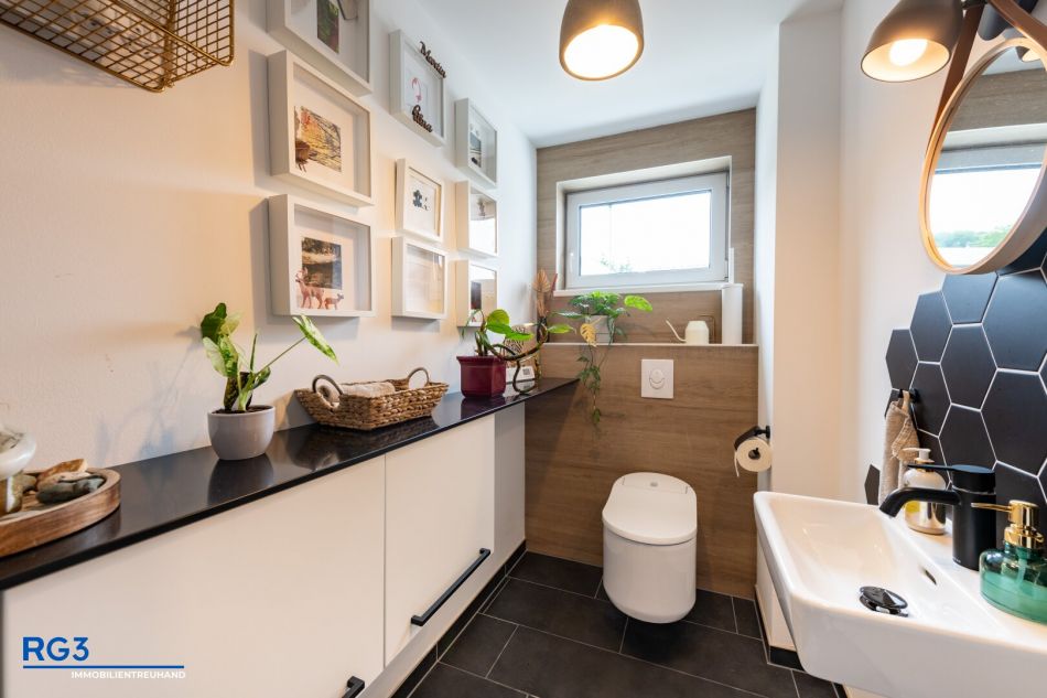 Auf ca. 95 m² Wohnfläche bietet diese 3-Zimmer-Wohnung ein durchdachtes Raumkonzept, das moderne Wohnansprüche mit naturnahem Lebensgefühl vereint. Die großzügige Terrasse und der ca. 61 m² große Eigengarten machen dieses Zuhause zu einer echten Wohlfühloase im Grünen.