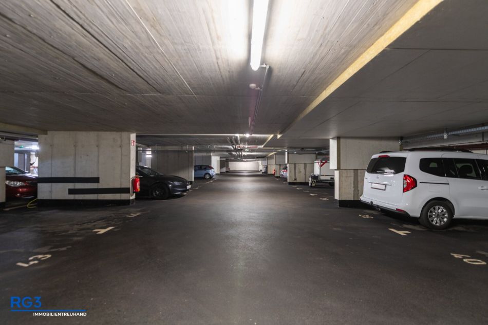 Sie fahren bequem in die Tiefgarage und gelangen mit dem Lift – inklusive Einkaufstaschen – barrierefrei direkt zur Wohnung. Beim Betreten befindet sich gleich rechts das separate WC und das helle Badezimmer – beide mit Fenster ausgestattet.