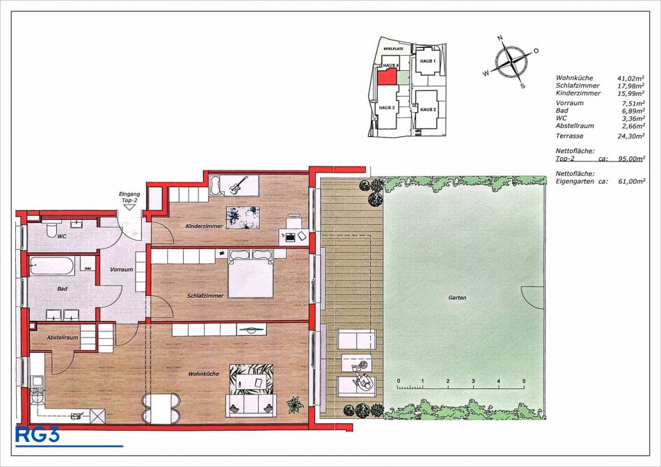 ✅ ca. 24 m² Terrasse + ca. 61 m² Eigengarten – sonnige Südostausrichtung