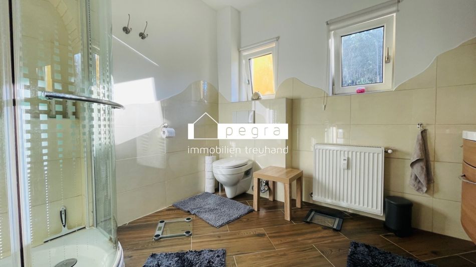 sowie eine ostseitige Terrasse mit ca. 28,57 m². Beheizt wird die Anlage durch eine moderne Öl-Zentralheizung.
