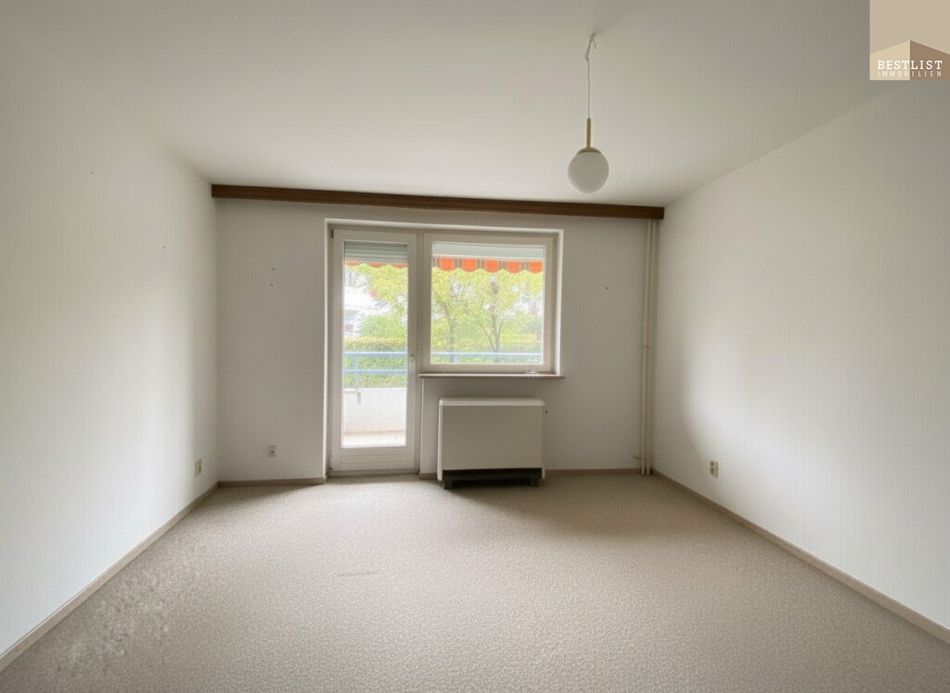 Wohnzimmer mit 15,6 m² und Zugang zur Loggia (5,32 m²)