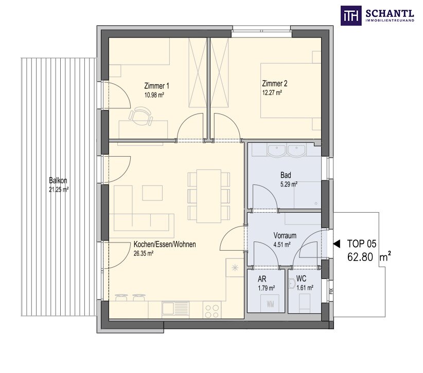 • Wohnfläche: 62,80 m²