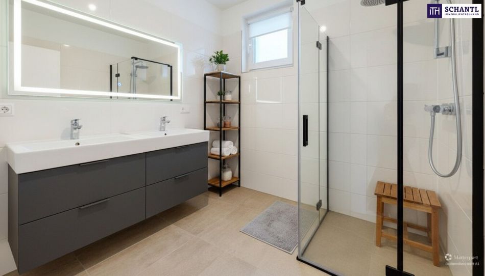 • Tageslichtbad mit ebenerdiger Dusche & Doppelwaschbecken – modern & komfortabel