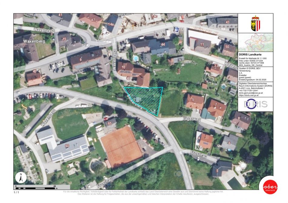 Das Grundstück befindet sich in der kleinen Gemeinde Waxenberg. Die Lage ist ruhig und idyllisch, umgeben von grünen Wiesen und Wäldern. In unmittelbarer Nähe befindet sich eine Schule, die bequem zu Fuß erreichbar ist. Auch eine Bushaltestelle ist nur wenige Gehminuten entfernt, von der aus man Anschluss an das öffentliche Verkehrsnetz hat. Die nächstgelegene größere Stadt ist Linz.