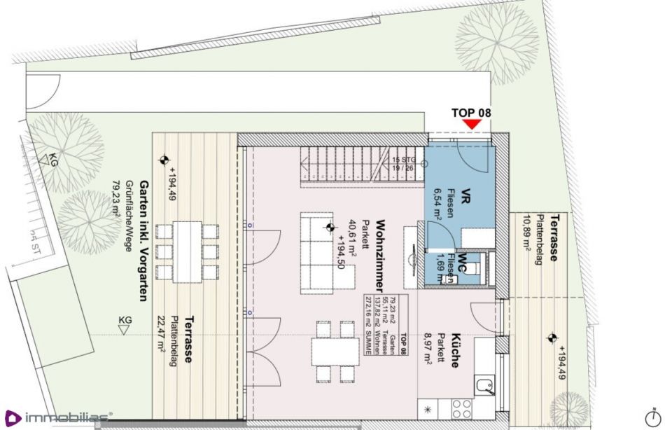ca 137,60 m² Wfl; zzgl Außenflächen, ca 55,92 m²; zzgl Gartenanteil, ca 62,50 m²
