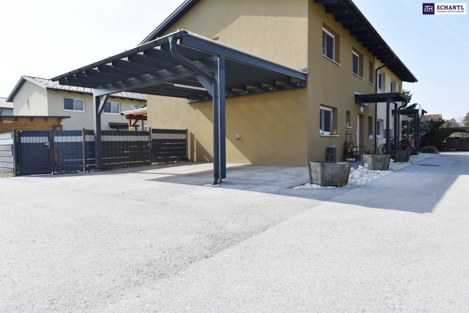 Ein großes Carport für 2 PKWs direkt am Haus komplettiert das Gesamtbild.