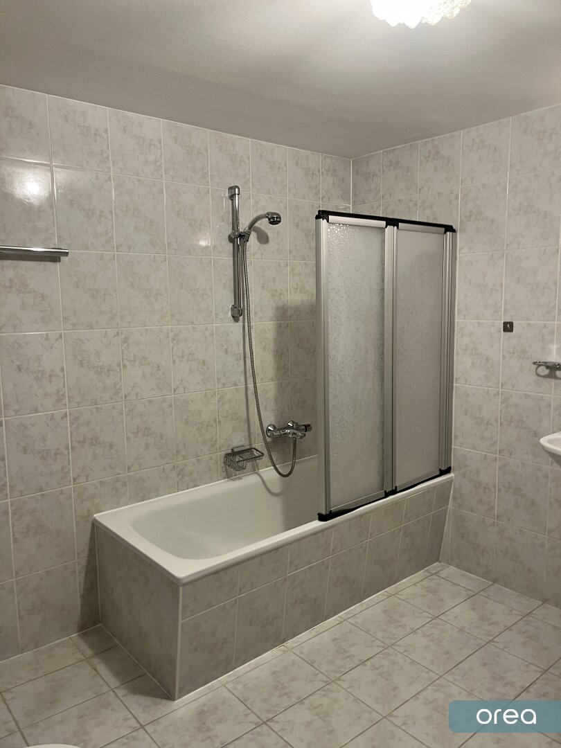 Das Badezimmer ist mit Badewanne und Dusche ausgestattet und bietet angenehmen Komfort im Alltag. Ein Autoparkplatz im Freien ist bereits im Mietangebot inkludiert.