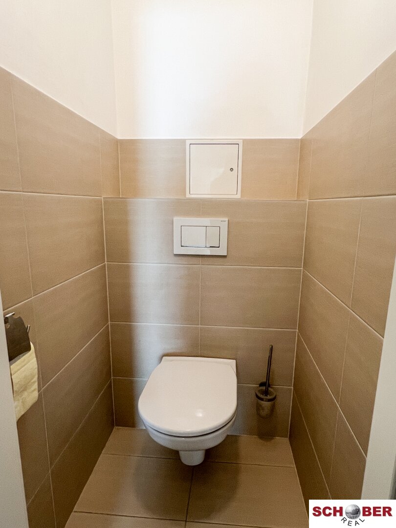 Vorzimmer mit modernen, großformatigen Fliesen (ebenso im Bad und WC)