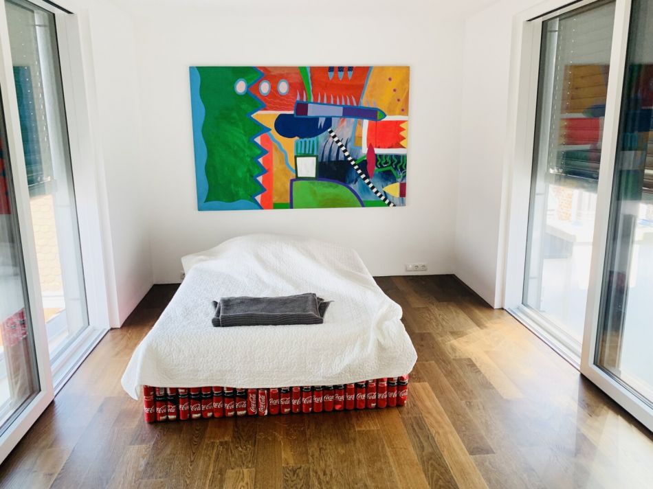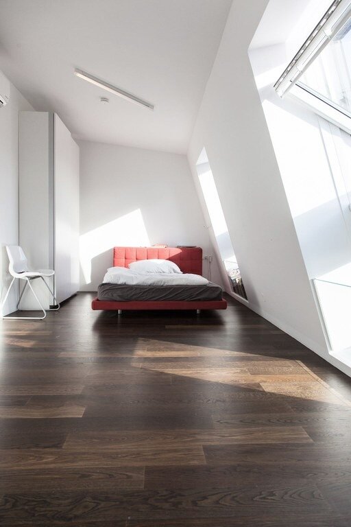 - Dielen-Parkettböden, Eiche kerngeräuchert, Marke: Weitzer in den Wohn- und Schlafräumen
