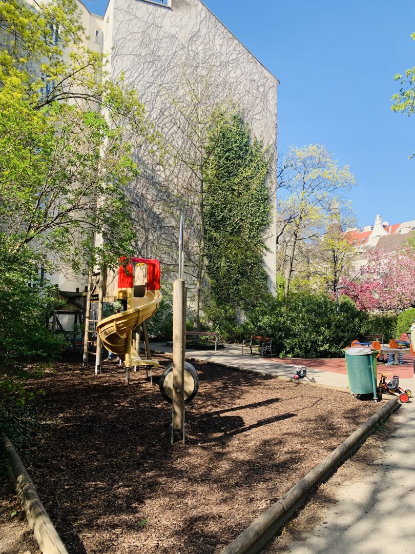 Der Garten entstand in den 1970er Jahren in einem stadthistorisch in Wien einzigartigen Prozess aus der Zusammenlegung und Begrünung mehrerer Innenhöfe.