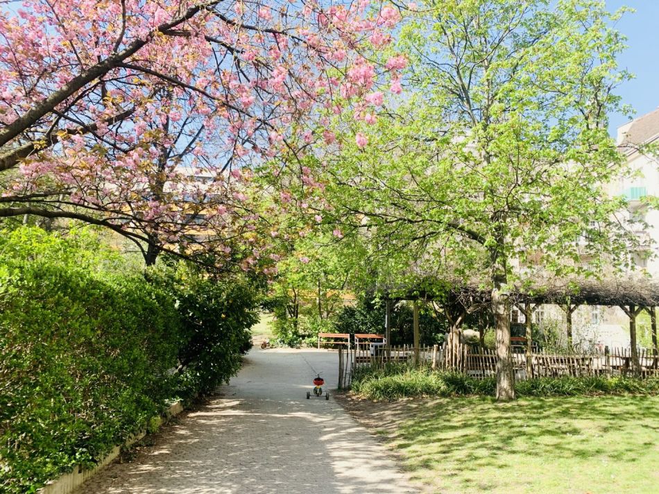 In einer Entfernung von 50 Metern befindet sich ein wunderschöner, großer öffentlich Garten mit verschiedenen Zonen.