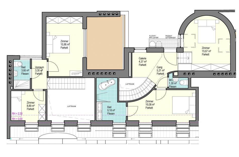 - 4 Zimmer: 15,96 m² + 15,67 m² + 16,08 m² + 8,89 m²