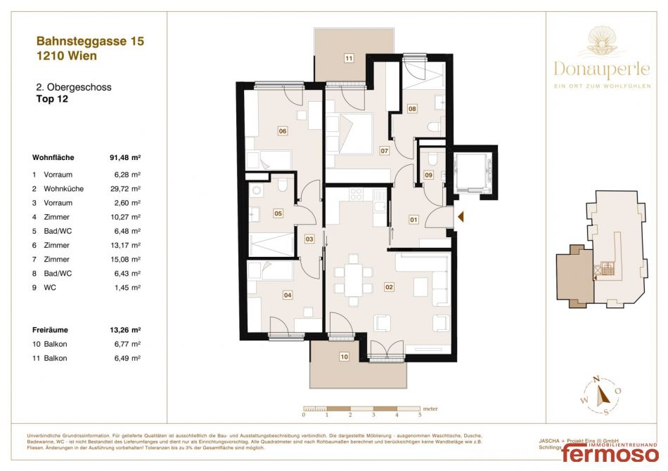 Im hochwertigen Neubauprojekt „Donau Perle“ in der Bahnsteggasse 15 erwartet Sie eine durchdacht geplante 4-Zimmer-Wohnung mit idealer Raumaufteilung und moderner Ausstattung. Diese charmante Einheit überzeugt durch ihre helle Wohnküche, den komfortablen Balkon und ein stimmiges Wohnkonzept – perfekt für Singles, Paare oder Anleger.