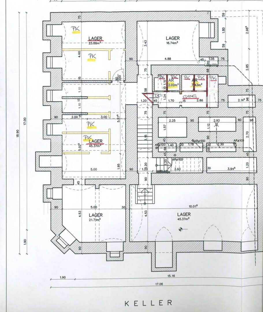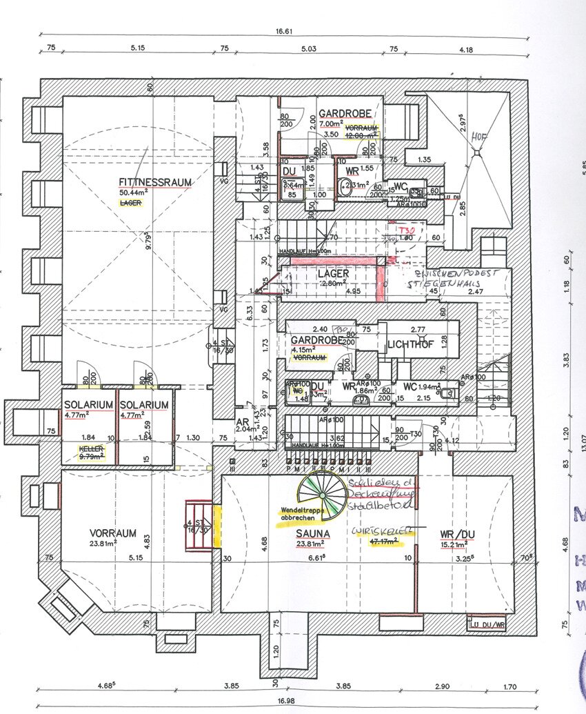 Zur Vermietung gelangt ein Fitnesscenter mit Sauna auf 2 Ebenen ( Souterrain und Keller ) auf einer Fläche von ca. 323,50 m² im 8. Wiener Gemeindebezirk.