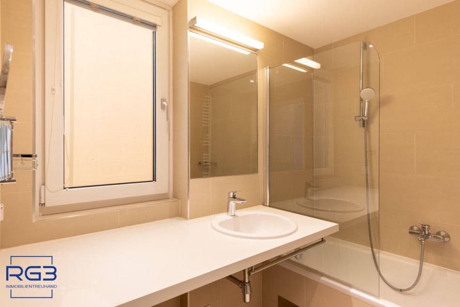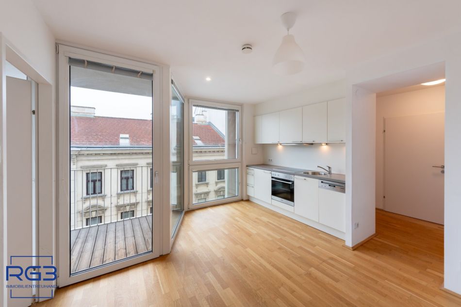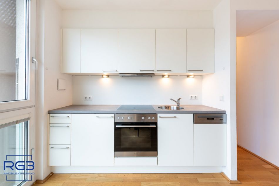 Du kommst hinein und spürst sofort: Das ist eine Wohnung, in der man gern lebt.Der Vorraum öffnet sich freundlich und führt direkt in den hellen Wohn- und Küchenbereich mit rund 13,5 m². Hier ist Platz für eine gemütliche Couch, einen Esstisch und natürlich ist eine moderne Küchenzeile mit Mielegeräten vorhanden – der Mittelpunkt der Wohnung.