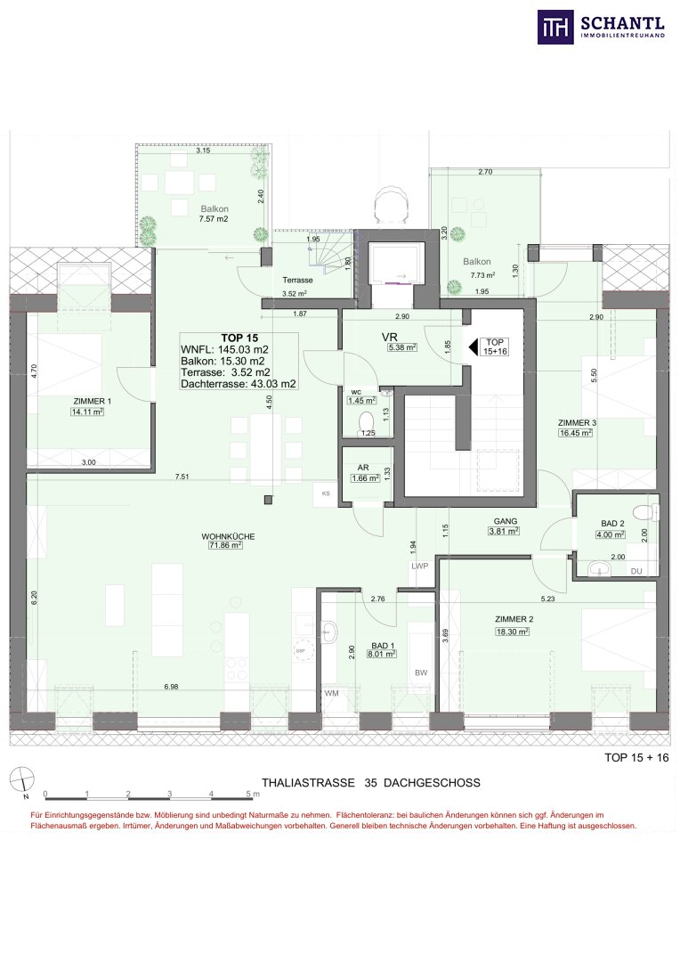 Wohnfläche ca. 145 m² + ca. 18 m² Terrasse/Balkon + ca. 43 m² Dachterrasse mit Weitblick