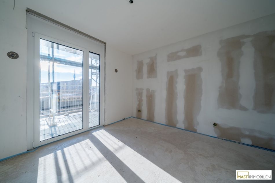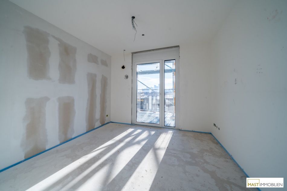 Die Wohnung befindet sich im 3. Liftstock und verfügt über 65,69 m² Wohnfläche + einen 7,66 m² großen Dachgarten + eine 18,46 m² große Terrasse + eine 23,05 große südlich ausgerichtete Loggia/Balkon.