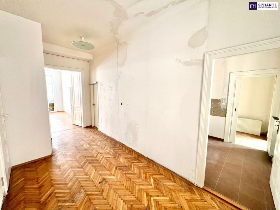 Hier treffen klassische Altbauelemente auf modernes Potenzial: hohe Decken, Flügeltüren, Fischgrätparkett – und Raum für Ihre Ideen. Ob als großzügiges Zuhause für die Familie, als Prestigeobjekt mit Stil oder als cleveres Investment: Diese Wohnung bietet alle Möglichkeiten.