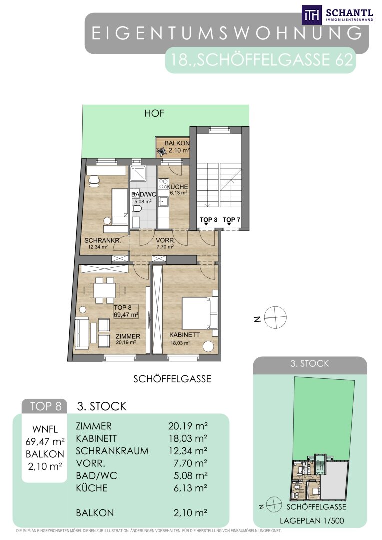 + TOP 8: 3.Stock / Wohnfläche ca. 69,47m² / Balkon ca. 2,10m² / € 580.000.-