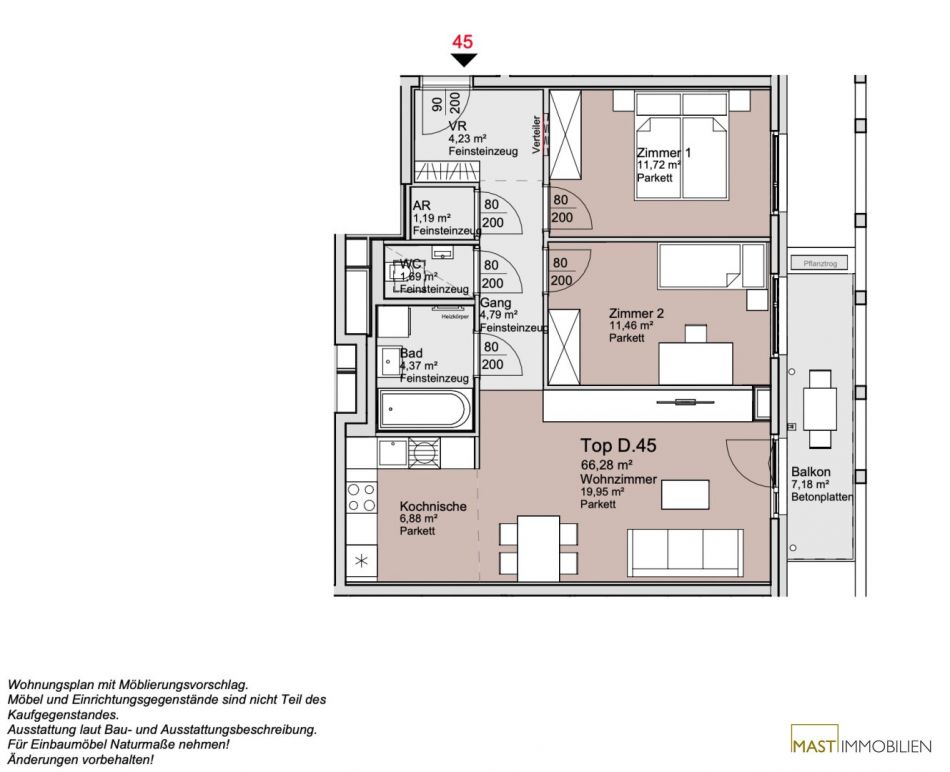 PROVISIONSFREI für den Käufer!Alle verfügbaren Wohnungen finden Sie auf unserer Homepage unter www.mast-immo.at. Um Ihre Suche zu erleichtern, steht Ihnen auf unserer Projektseite www.anderschanze25.at ein Wohnungsnavigator zur Verfügung, der Ihnen hilft, sich einen Überblick über die Lage der einzelnen Wohnungen innerhalb des Komplexes zu verschaffen.