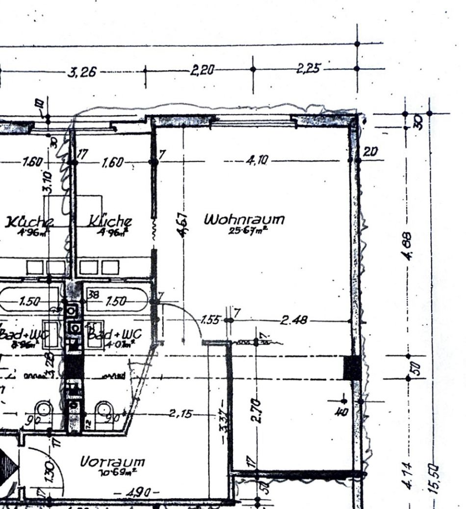 Wohnfläche: 45,33 m²; Baujahr: ca. 1968; Wohnungseigentum begründet; Förderung zurück bezahlt;