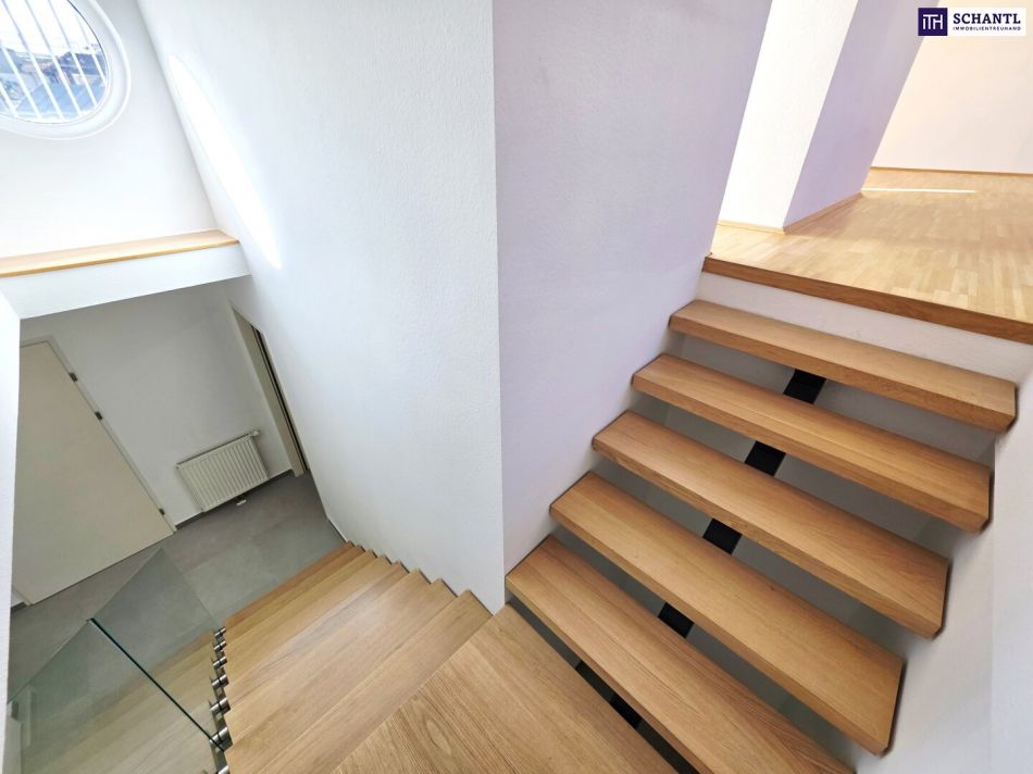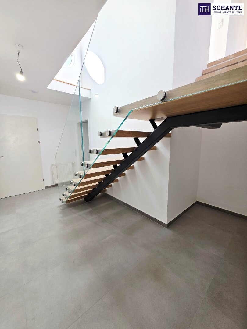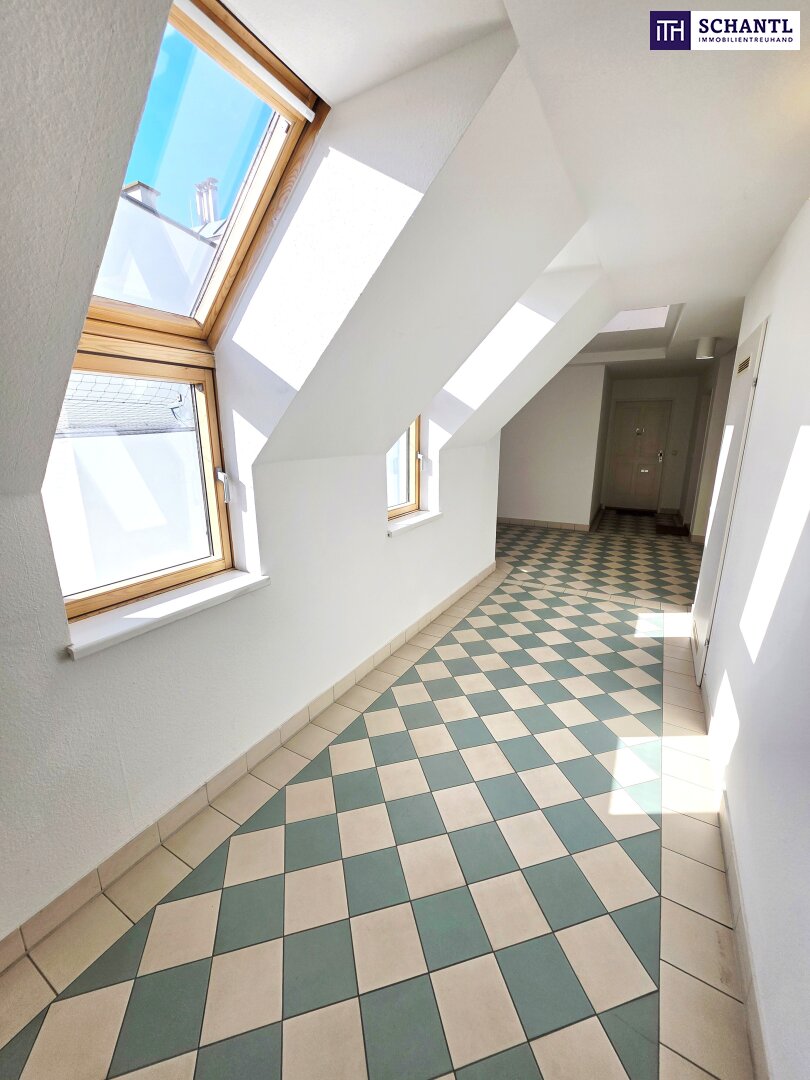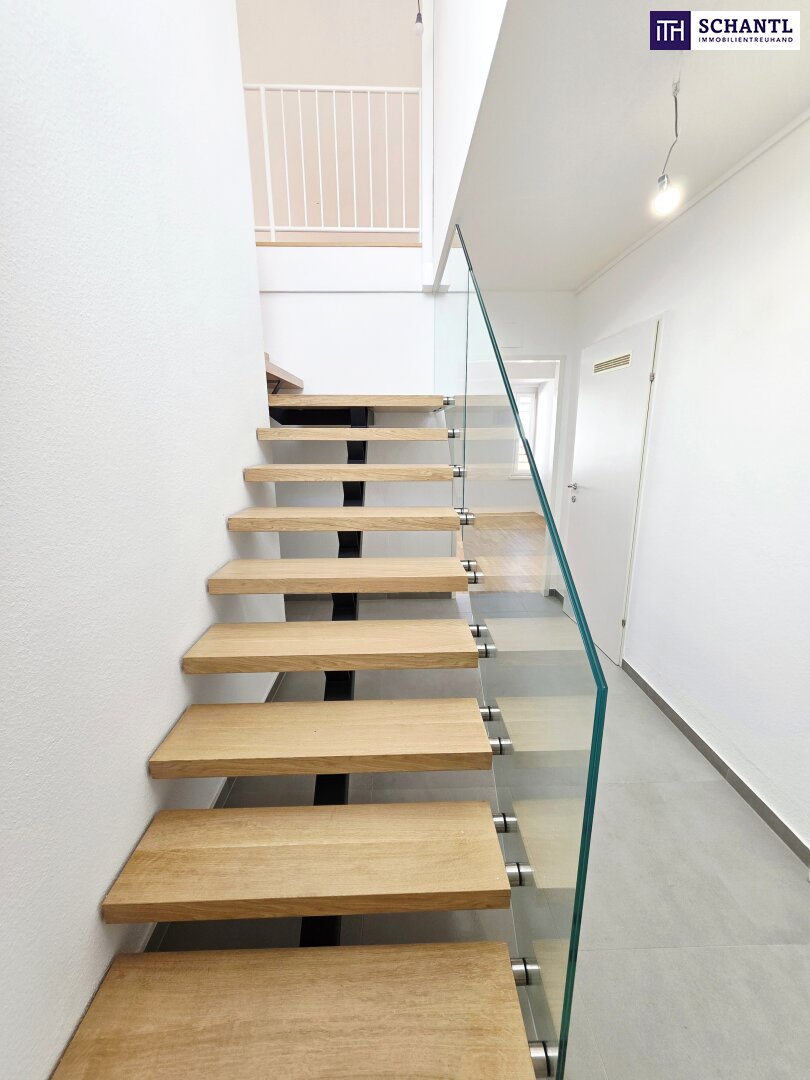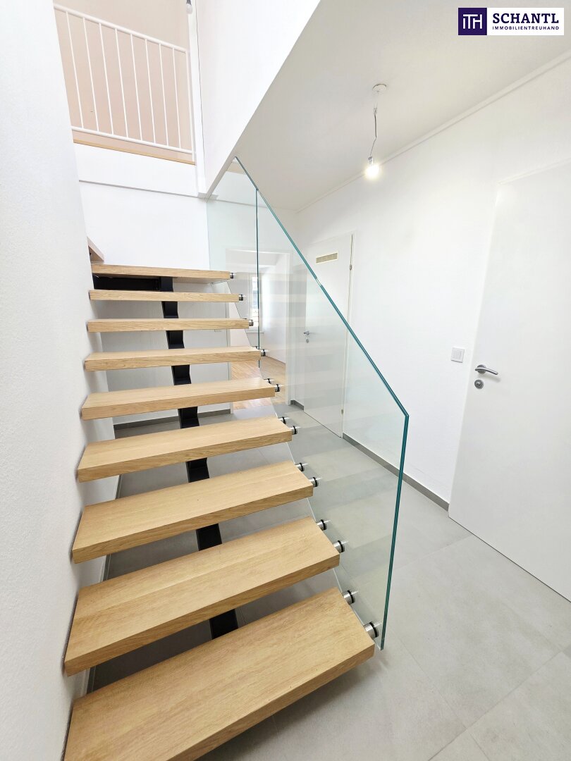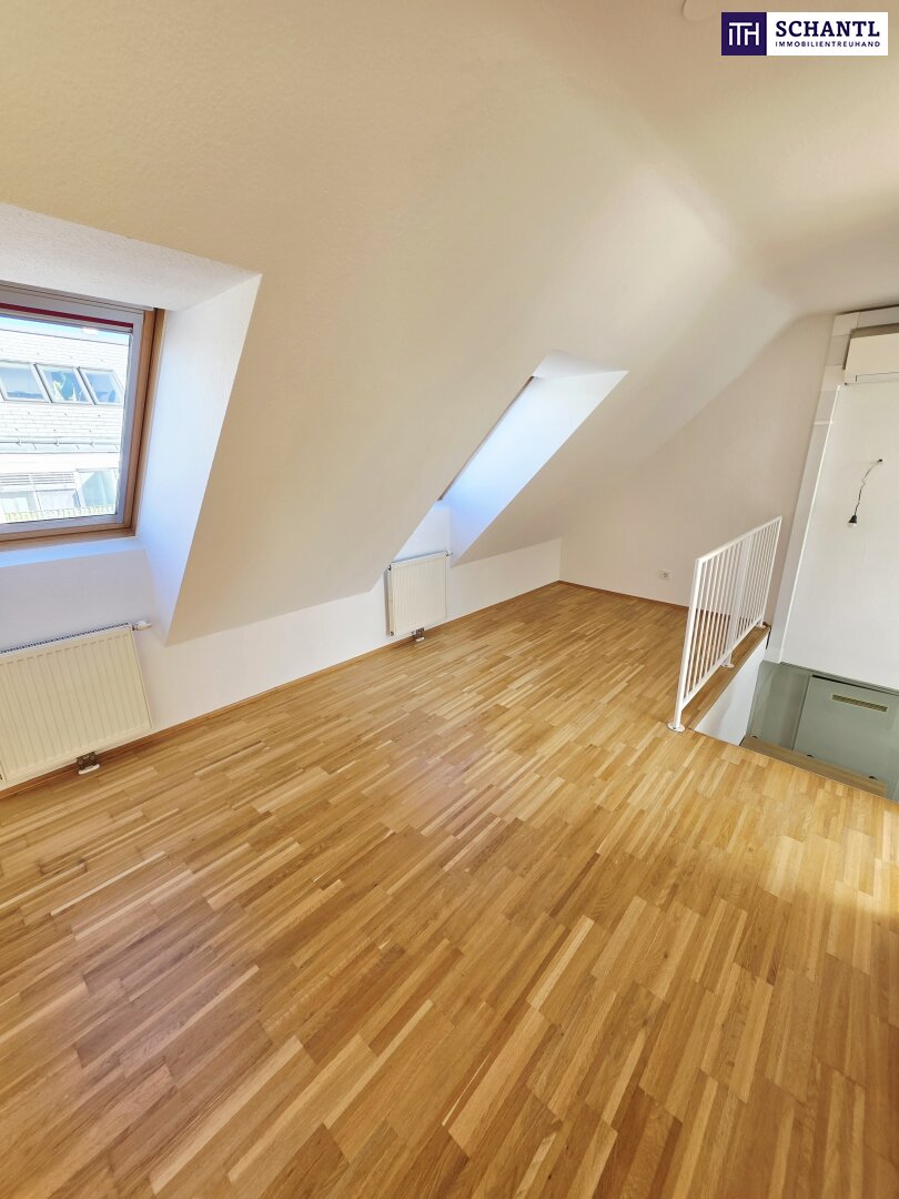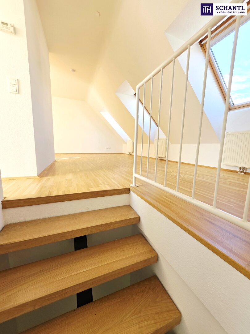 Ihre neue Wohnung im Dachgeschoss mit Fern- und Traumblick wird Sie restlos begeistern und teilt sich auf der 1.Ebene in einen geräumigen Vorraum mit Platz für eine Garderobe und Stauraum unter der Treppe zur 2.Ebene, ein schönes Badezimmer mit Badewanne und Waschmaschinenanschluss, ein separates WC, einen praktischen Abstellraum sowie ein geräumiges und gemütliches Schlafzimmer.