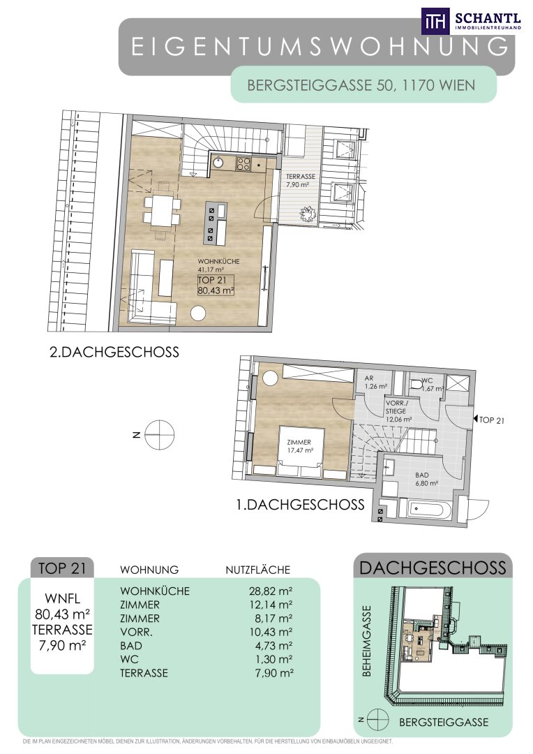 + TOP 21 / Dachgeschoss: Wohnfläche: ca. 80,43m² + Terrasse: ca. 7,90m² / 2 Zimmer / € 539.000.-