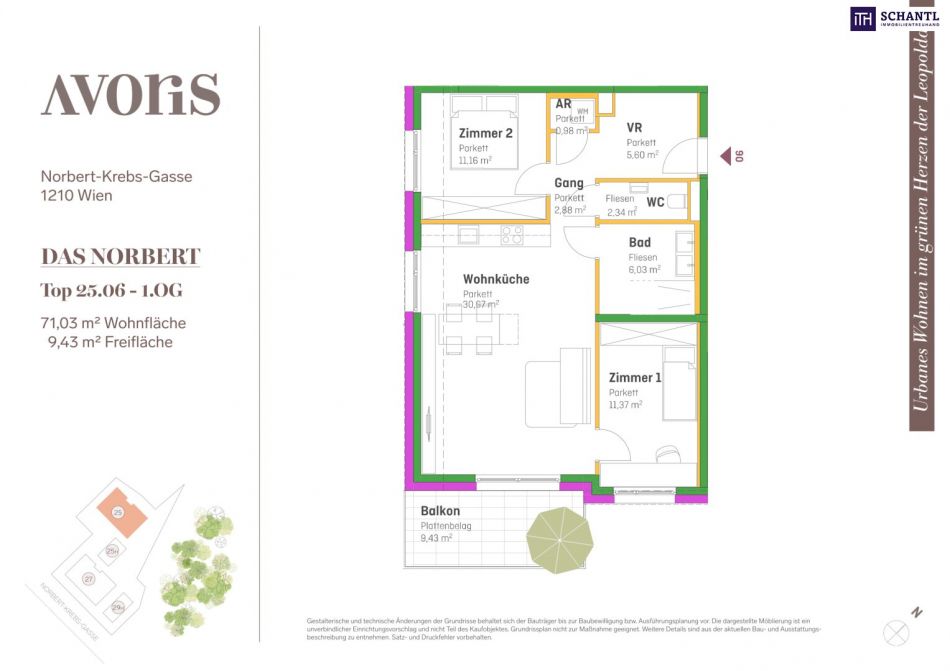 Wohnfläche: ca. 71,03m² + Balkon: ca. 9,43m² + Kellerabteil