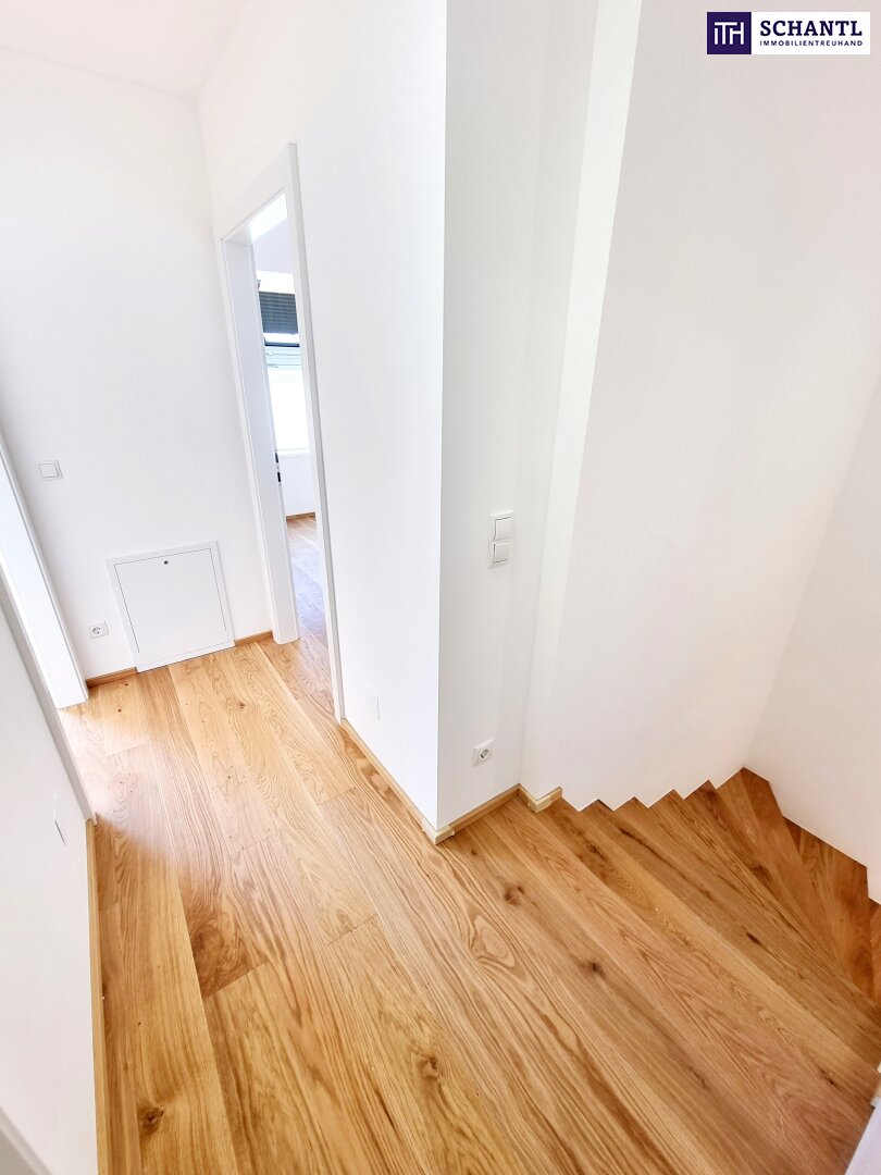 Hausfeeling pur! Ihr neues Townhouse wird Sie begeistern und teilt sich auf der 1.Ebene in einen geräumigen Vorraum mit viel Platz für eine Garderobe und Stauraum, ein separates Gäste-WC, einen praktischen Abstellraum sowie ein lichtdurchflutetes und großes Wohn-Esszimmer mit Zugang zur Terrasse bzw. dem charmanten Garten.