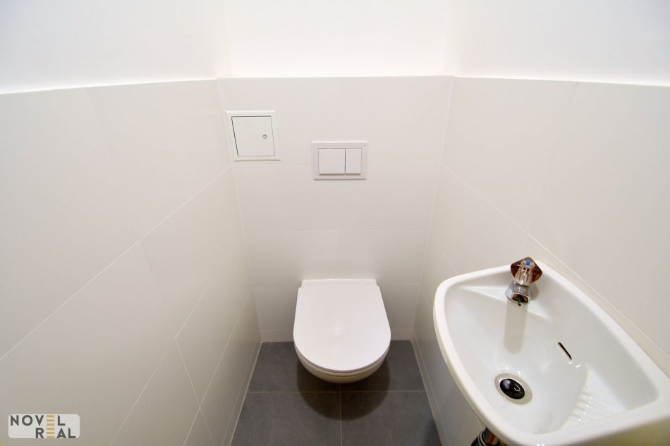 • separate Toilette mit Handwaschbecken und Fenster